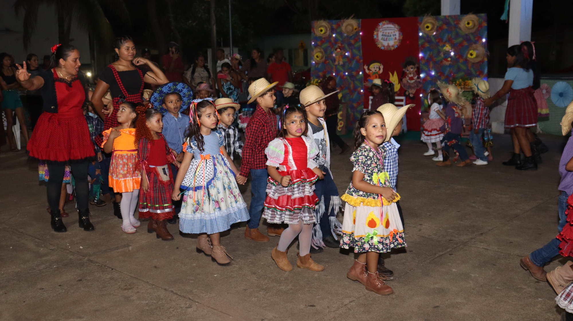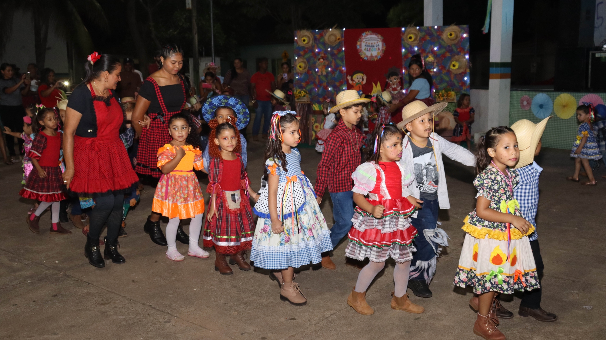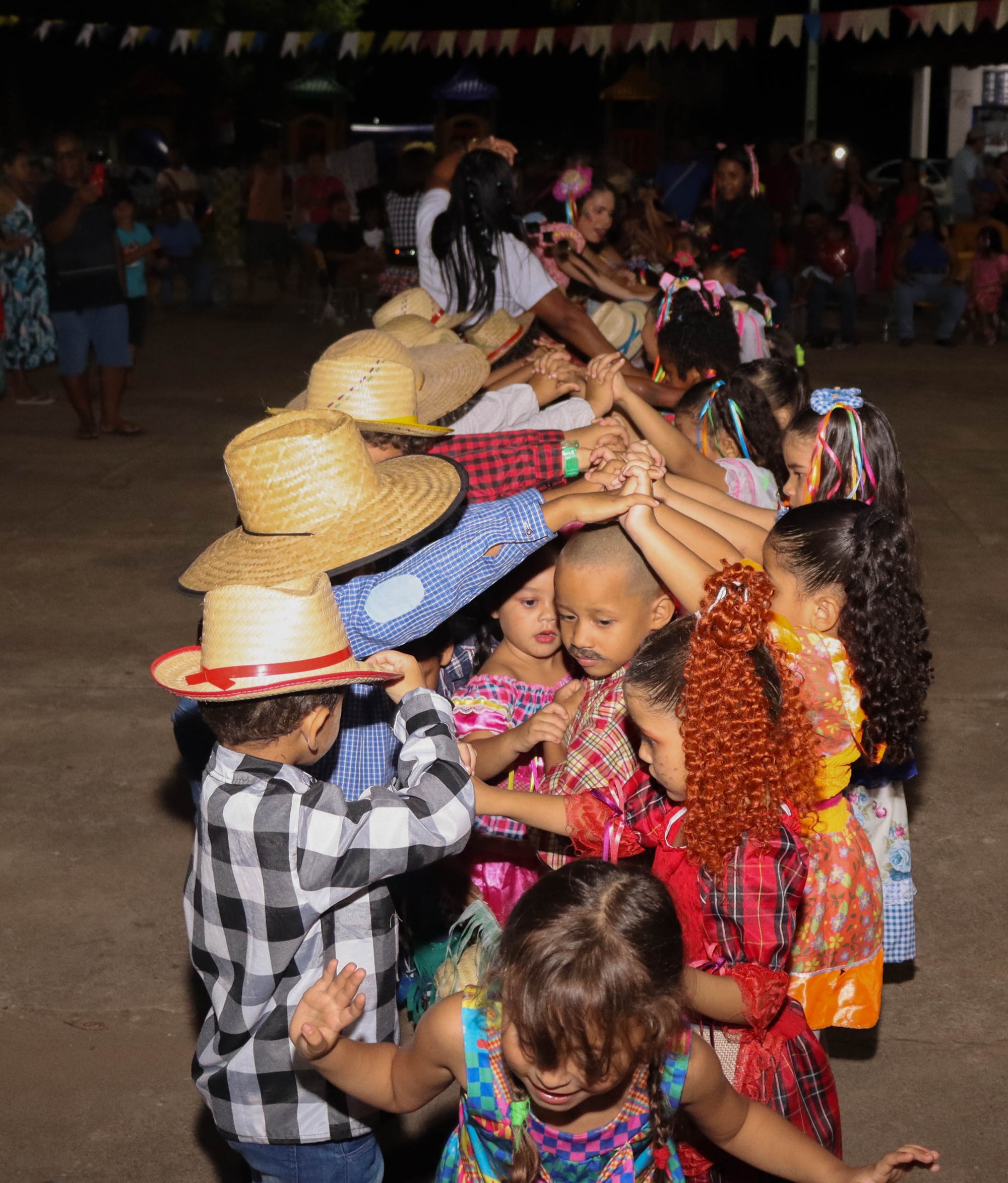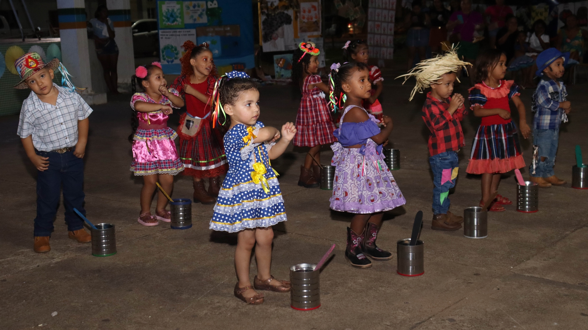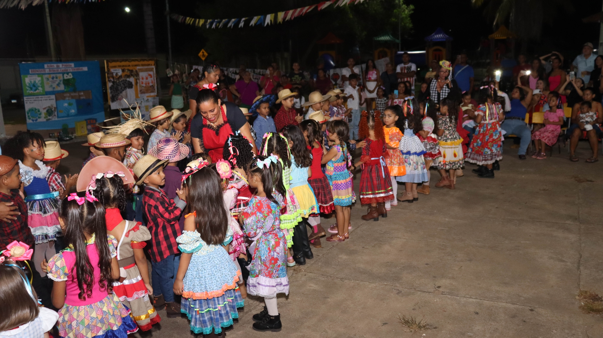 O evento contou com apresentações culturais das crianças, que encantaram o público com danças típicas, quadrilhas e trajes caipiras.