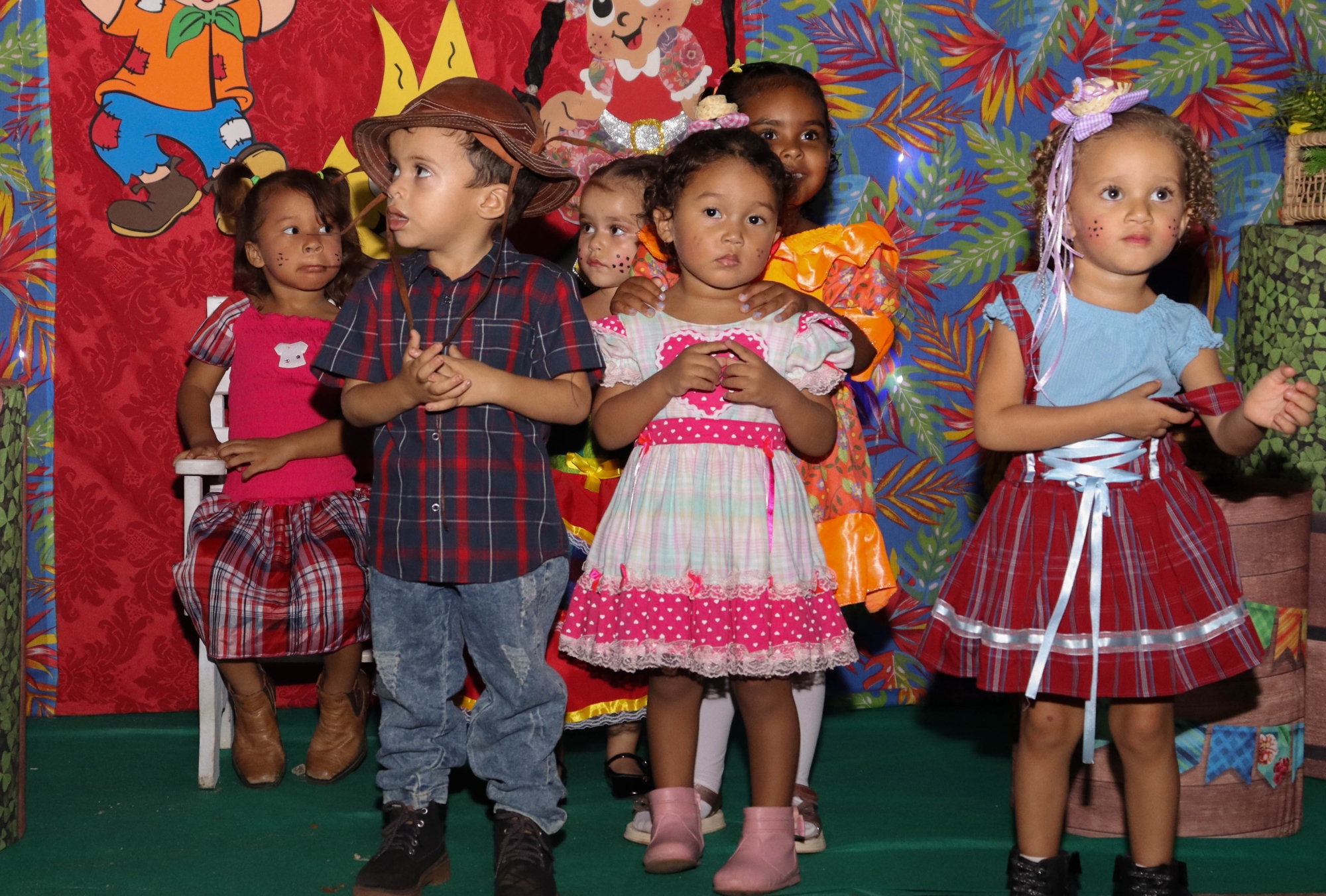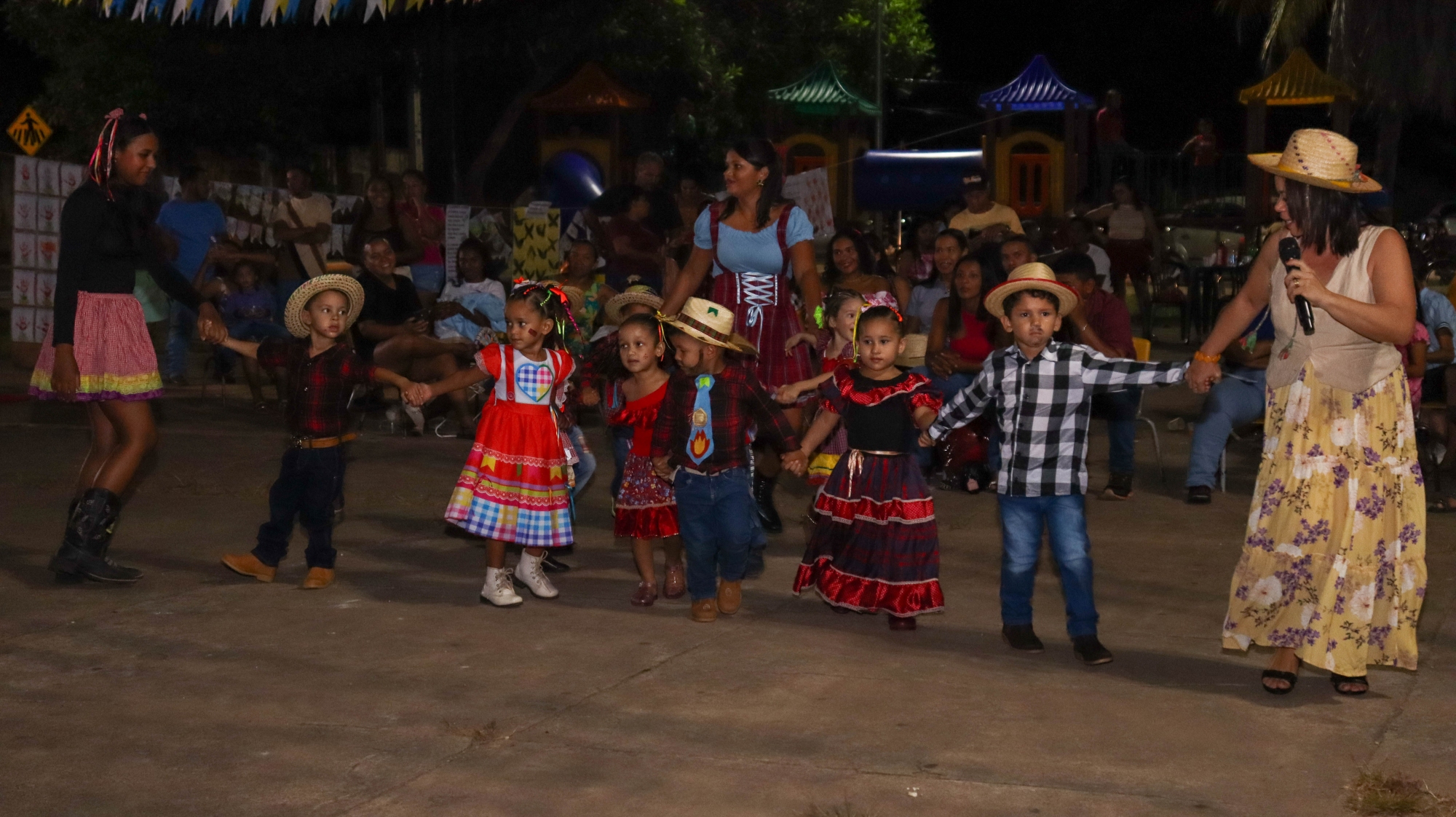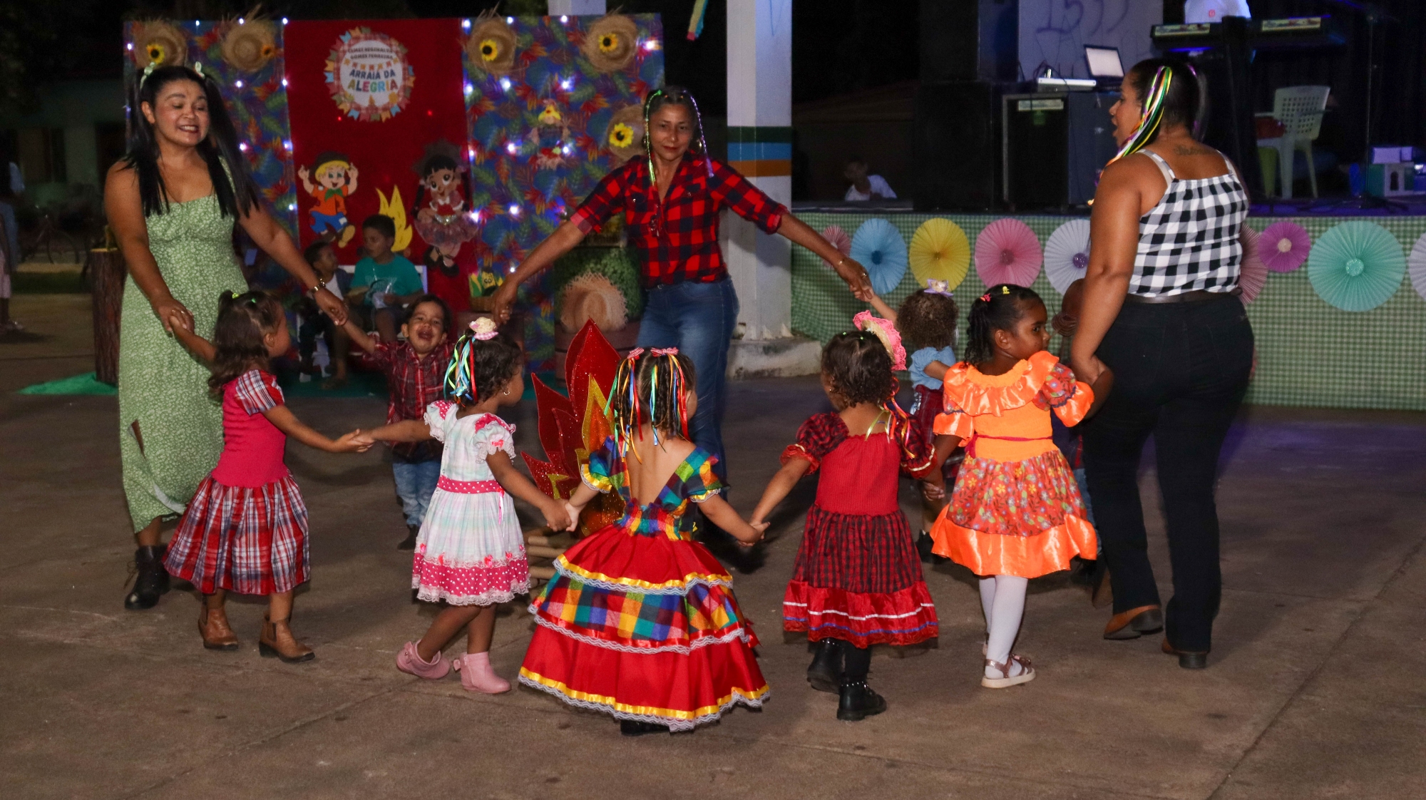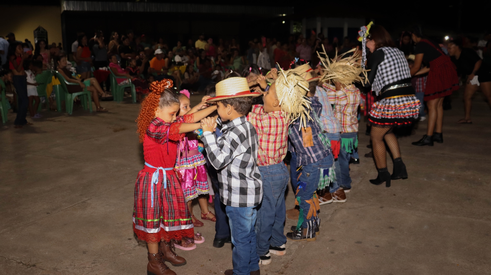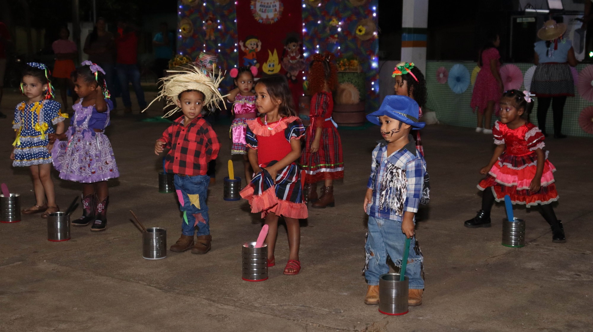 O evento contou com apresentações culturais das crianças, que encantaram o público com danças típicas, quadrilhas e trajes caipiras.